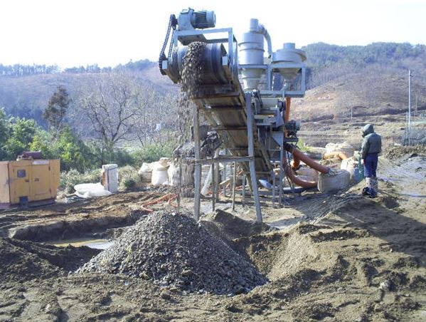 Eco-friendly machine that separating the mixture of sediment into water and soil through Vibrator Screen and Screw Conveyor.