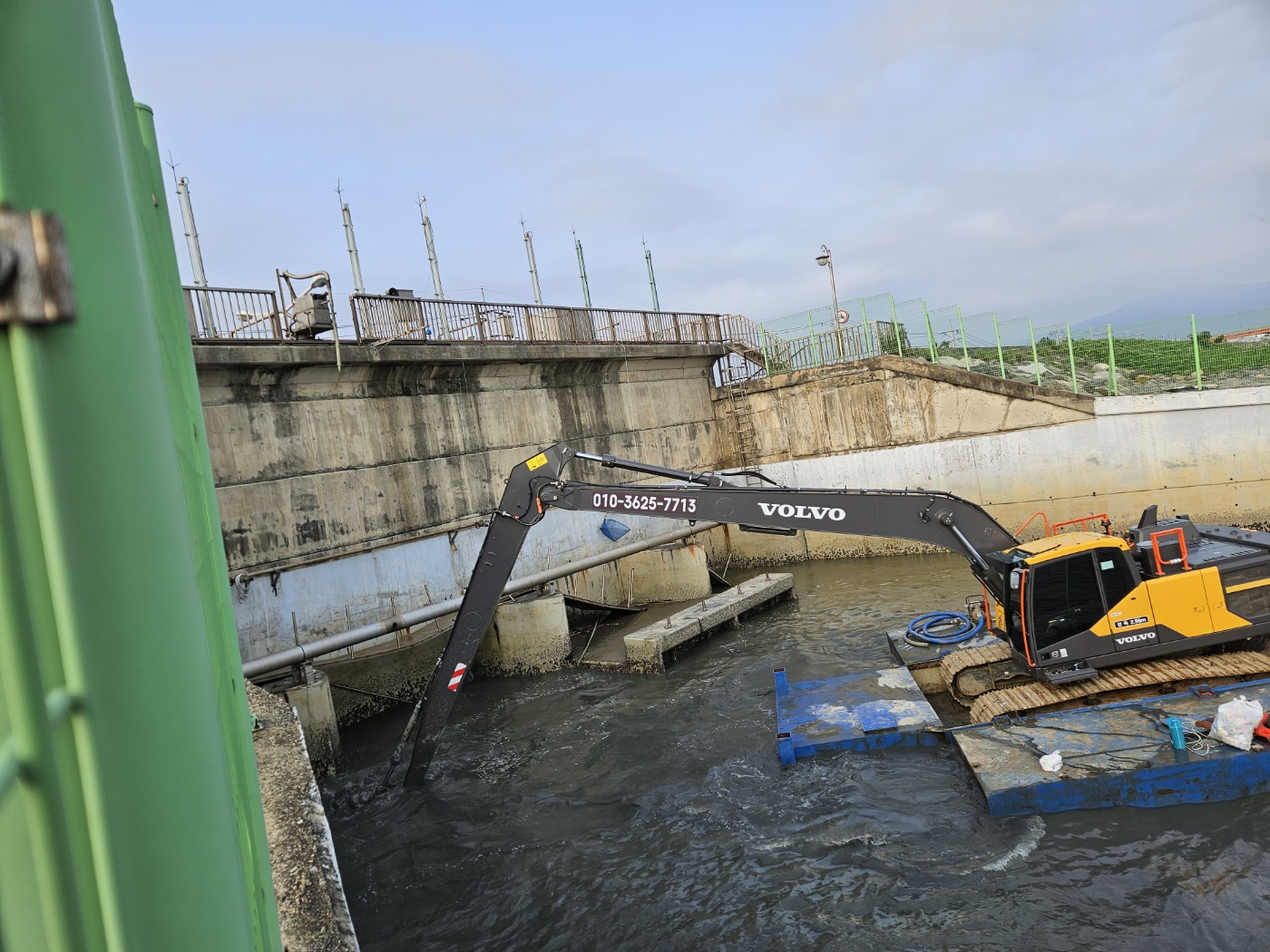 일반굴착기 및 롱붐굴착기 탑재목적으로 제작한 조립식 바지선으로 장비가 탑승하는 본선, 본선 양측에 장착하는 부력체로 구성됩니다. 최대 텐급(1.0㎥/급) 롱붐 굴착기 탑재가 가능하며 갯벌, 습지 등 연약지반과 수상에서 활용 가능하며 탑재된 굴착기의 붐대를 이용하여 조립식 바지를 슬라이딩 하는 방식으로 기동 가능합니다.