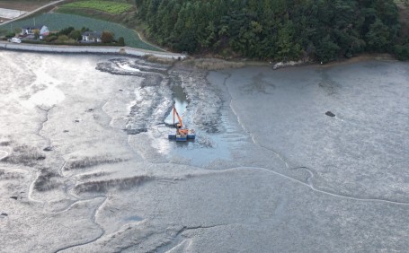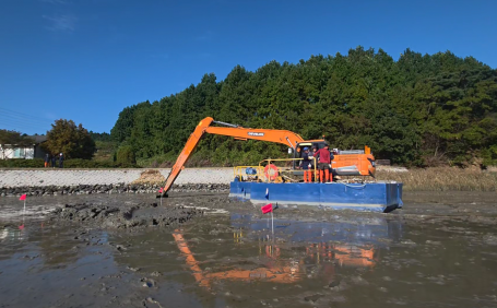 < ㅇㅇ만 갯벌식생 복원 사업(조립식바지+롱붐굴착기를 활용한 준설공법) >